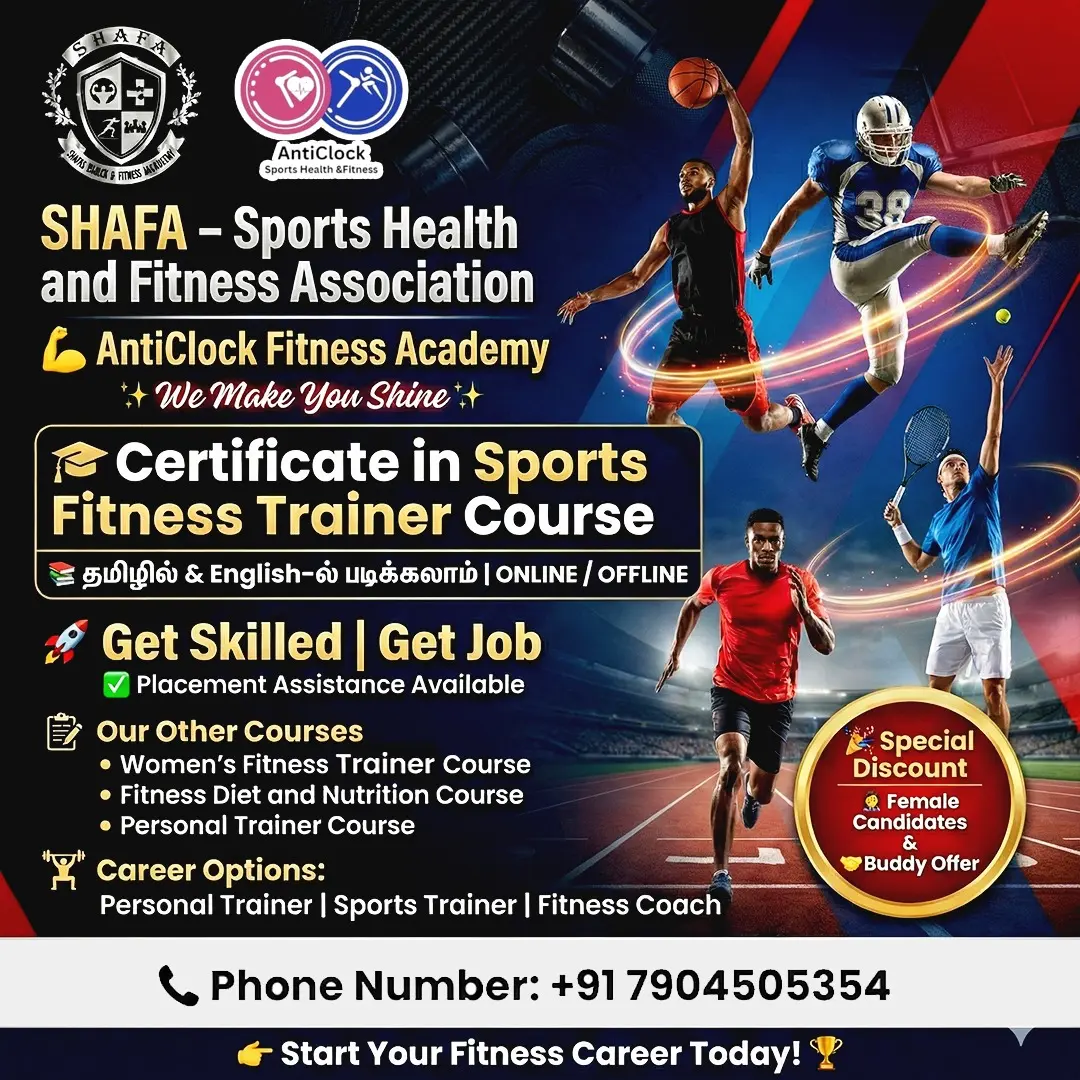 By the end of the course, participants will be equipped to assess athletes, design and implement performance-focused training programs, support injury prevention and recovery within professional scope, and pursue career opportunities as sports fitness trainers in schools, academies, clubs, and professional sports environments.